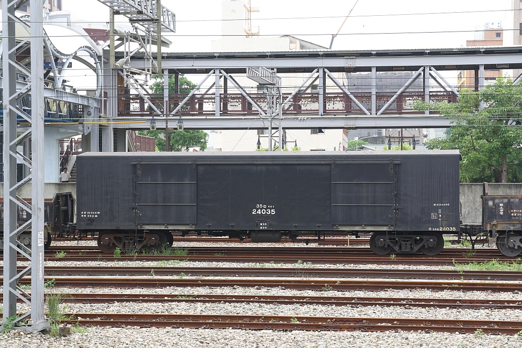 R38 (A1A'A1A'-de, GM-EMD, Type G12, Bauj. 1961, Fabr.Nr. 26330) ist am 08.Juni 2017 mit einem kurzen Güterzug in der Chiayi Station angekommen.