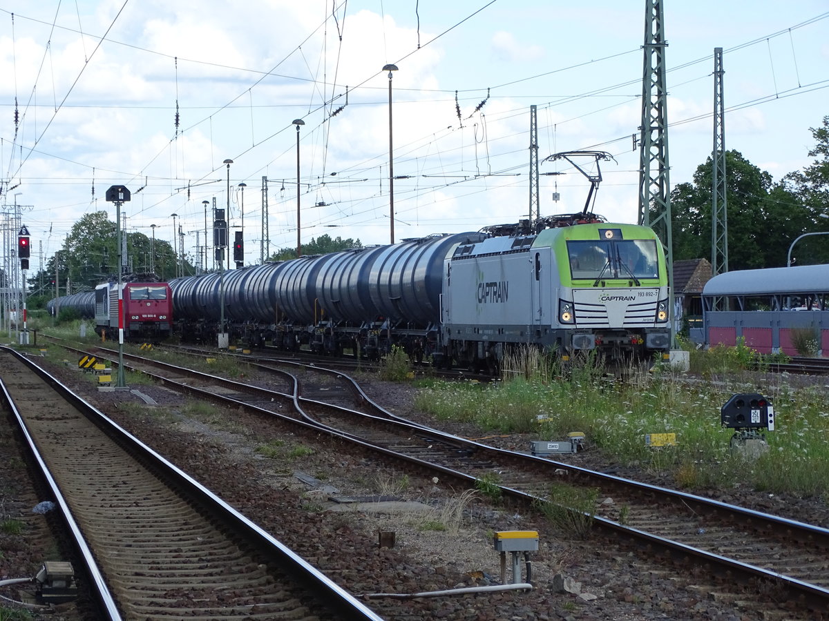 Am 08.07.2017 kam 193 781 mit einem Kesselzug aus Richtung Magdeburg nach Stendal.