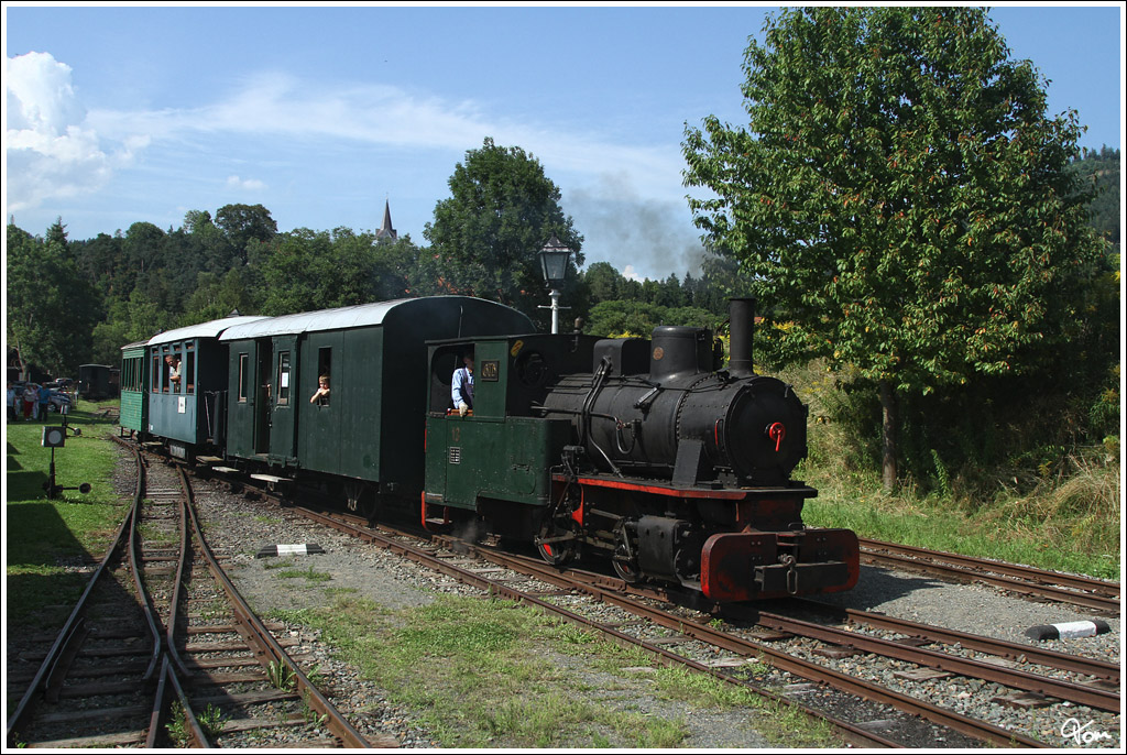 Auf der Gurkthalbahn, fährt ex Böhler 13 Bn2t gebaut von Krauss München 1941, von Pöckstein Zwischenwässern nach Treibach Althofen.