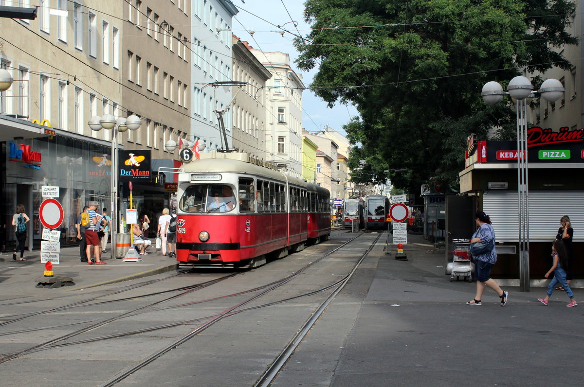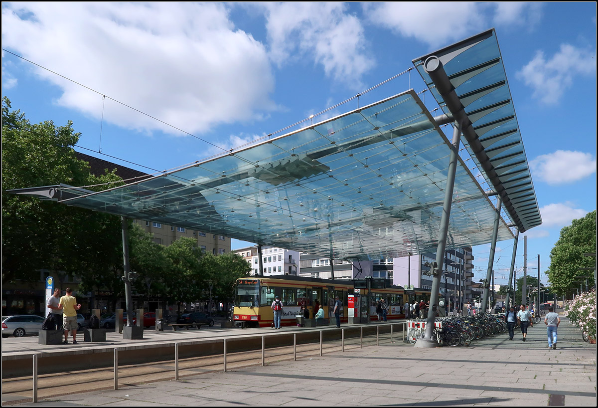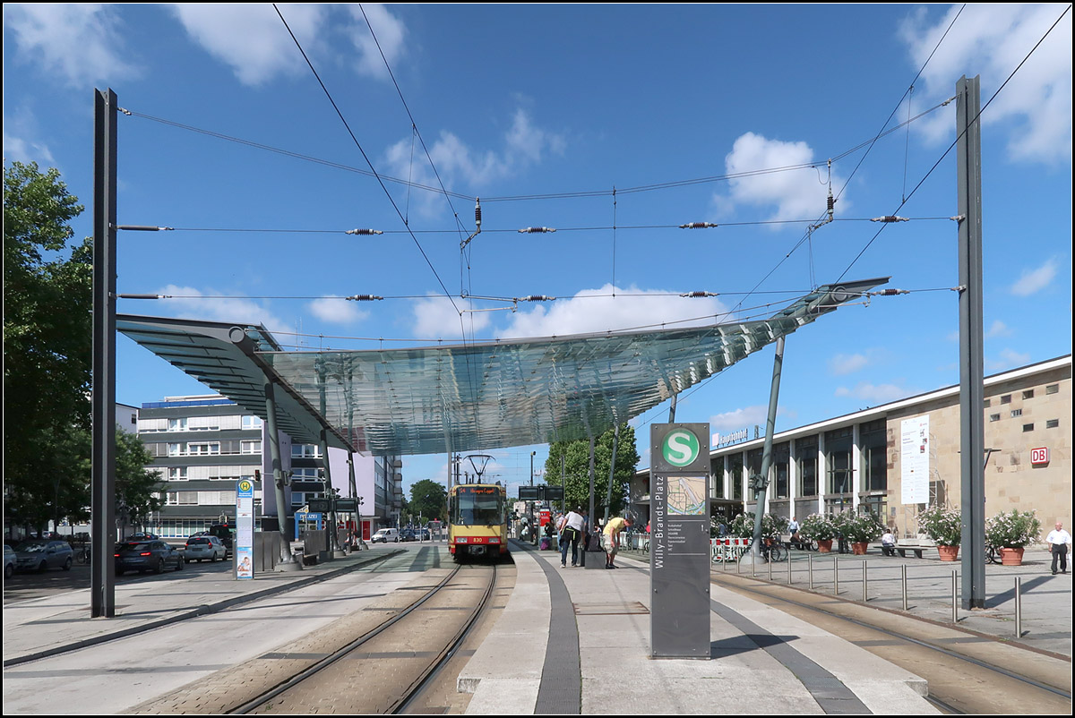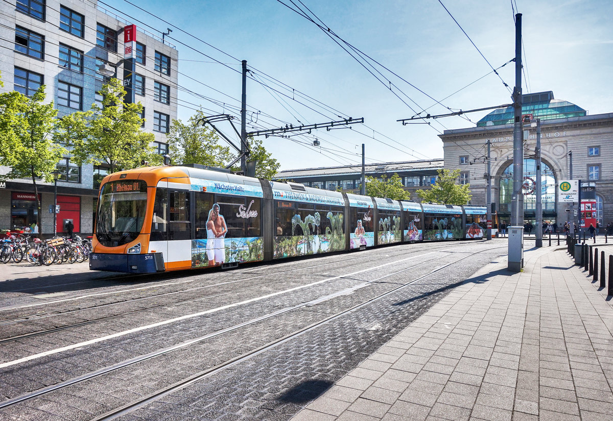 Der rnv-Tramwagen 5621, fährt am 20.4.2017, kurz vor der Haltestelle Mannheim Hauptbahnhof vorüber.