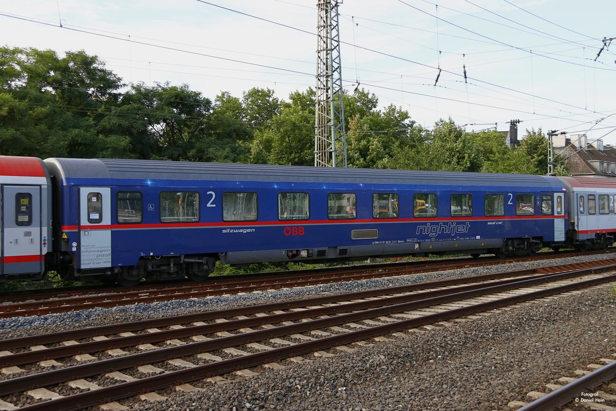 ÖBB 1116 155 mit werksneuen Nutzfahrzeugen im Güterbahnhof Köln-Kalk Nord.