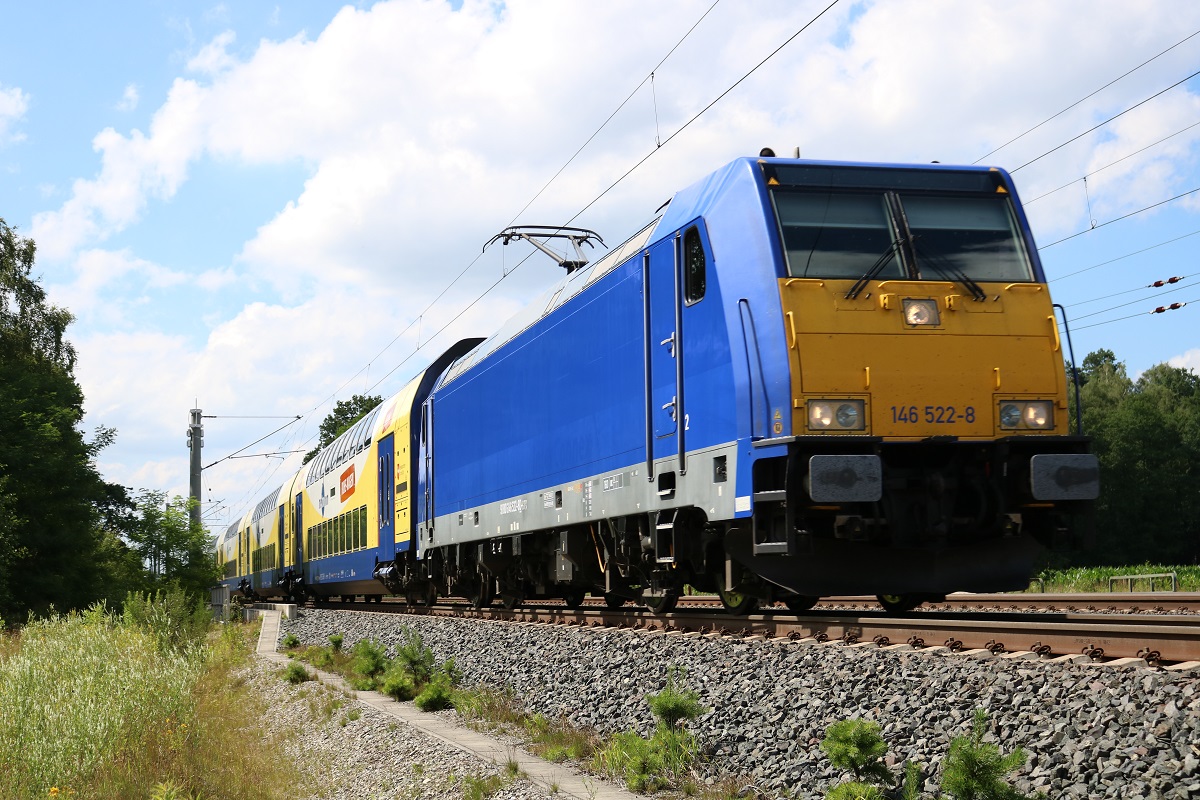 146 522-8 der metronom Eisenbahngesellschaft mbH als ME 81661 (RE3) von Hamburg Hbf nach Lüneburg in Radbruch auf der Bahnstrecke Hannover–Hamburg (KBS 110). [6.7.2017 - 15:42 Uhr]