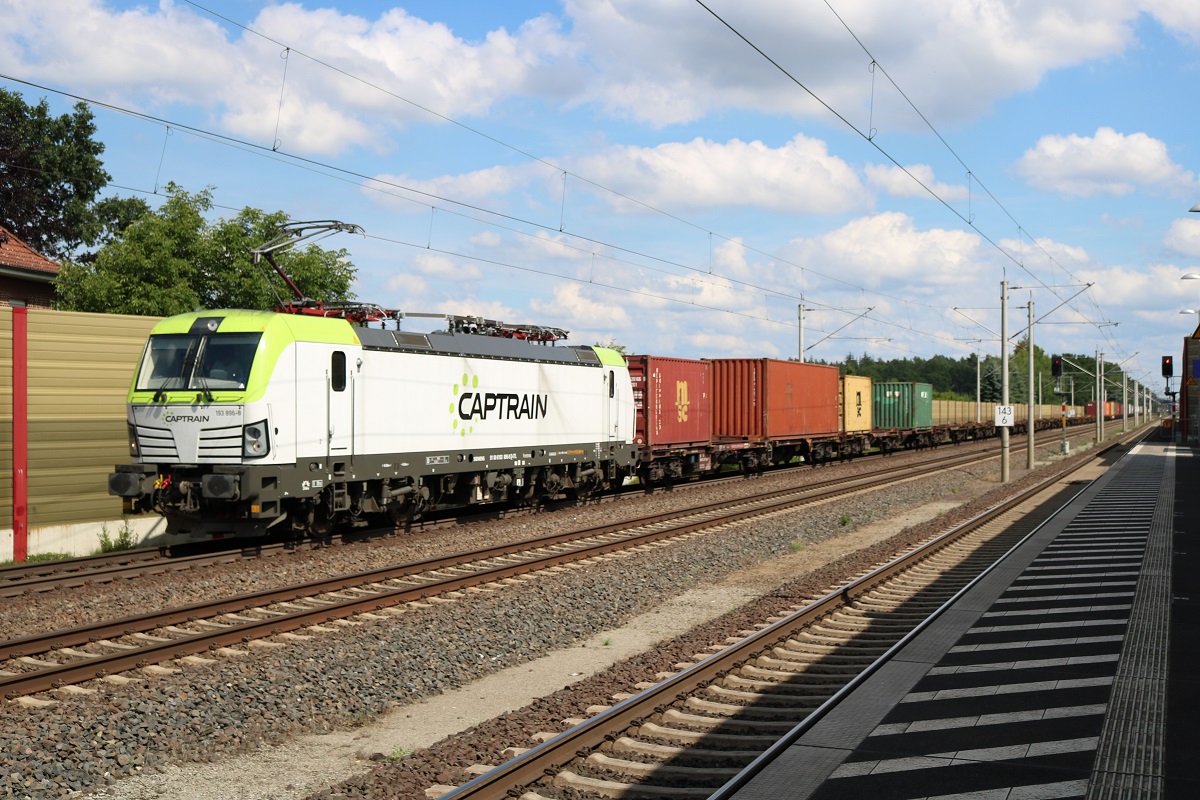 193 896-8 Captrain als Containerzug durchfährt den Bahnhof Radbruch auf der Bahnstrecke Hannover–Hamburg (KBS 110) Richtung Hamburg. [6.7.2017 - 15:58 Uhr]