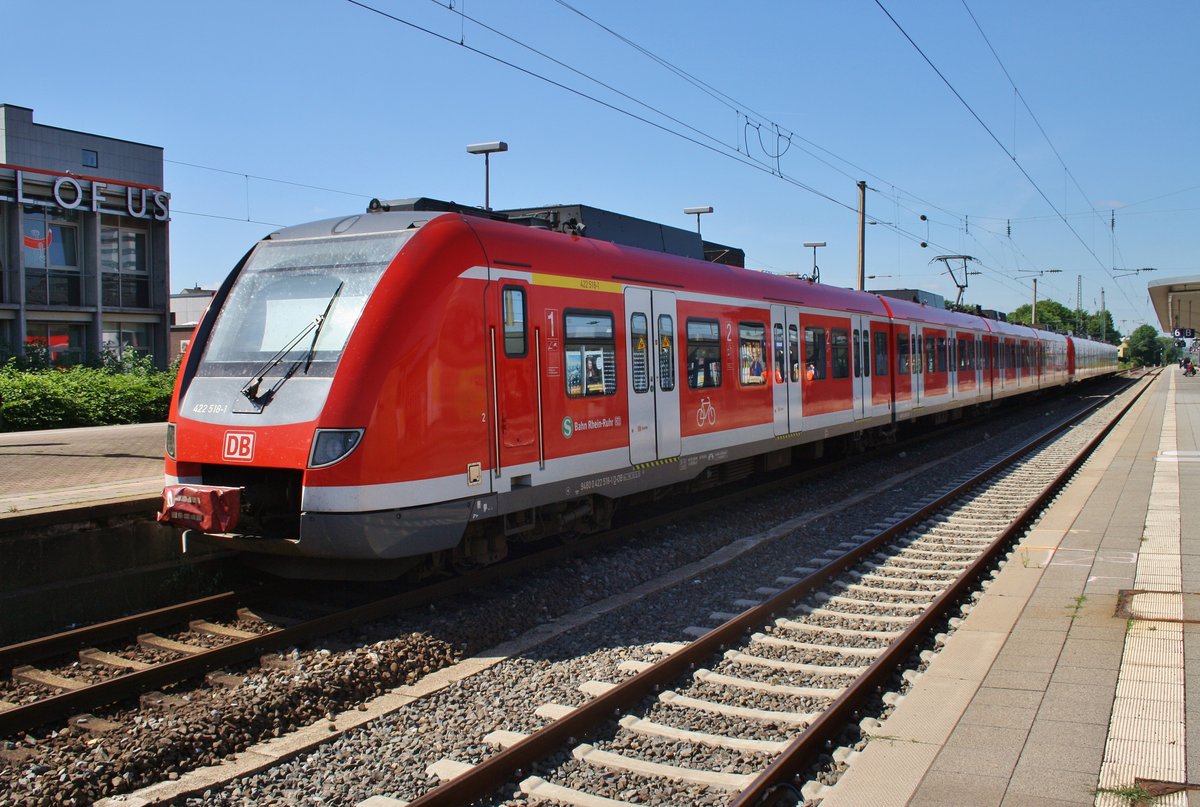 422 518-1 steht am 3.7.2017 als S1 von Bochum Hauptbahnhof nach Solingen Hauptbahnhof im Bochumer Hauptbahnhof bereit.