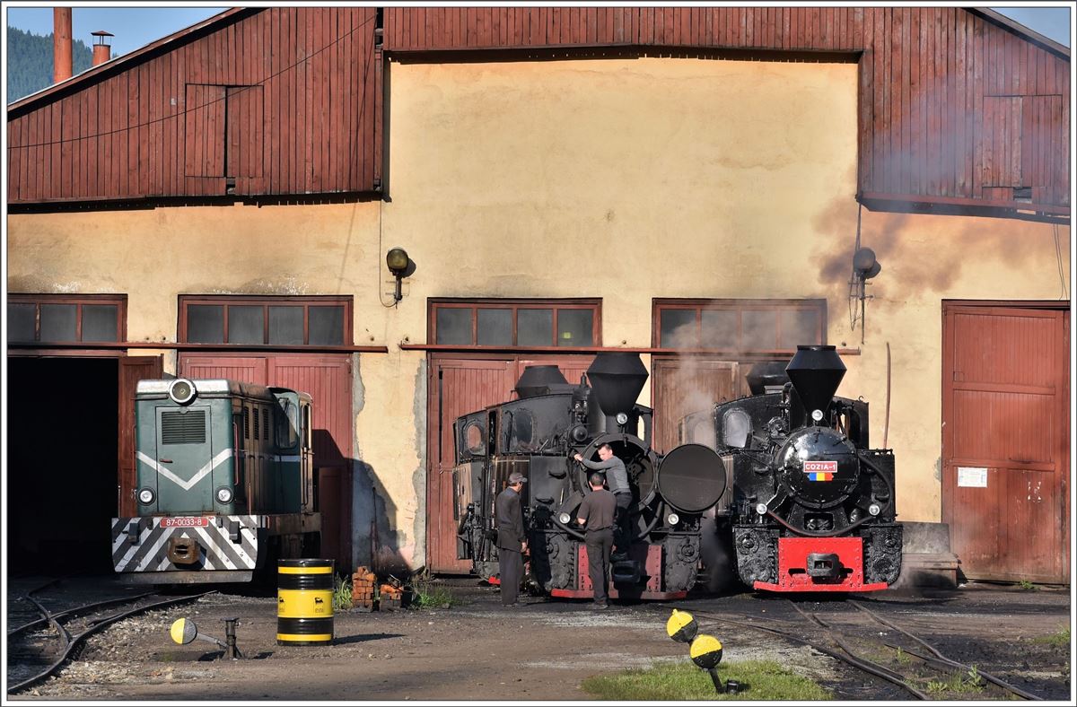 87-0033-8, 764.435 "Bavaria" und 764.408 "Cozia-1" vor dem Depot in Viseu de Sus. (12.06.2017)