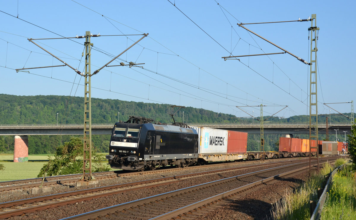 Die für Metrans fahrende 185 552 führte am Morgen des 14.06.17 einen Containerzug durch Retzbach-Zellingen Richtung Würzburg.