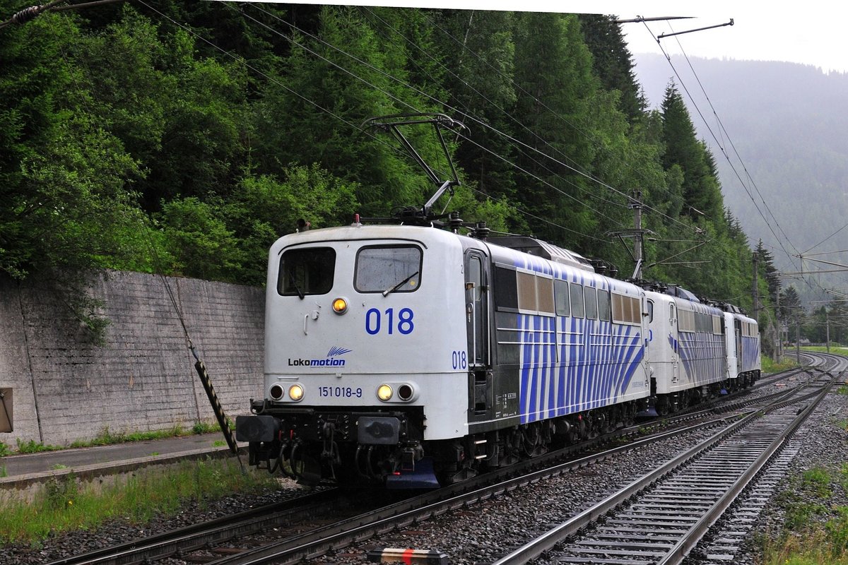 Ein Locomotion-Lokzug angeführt von 151 018-9 bei der Rückfahrt vom Brenner nach Kufstein aufgenomen am 14.07.17 bei Gries am Brenner.