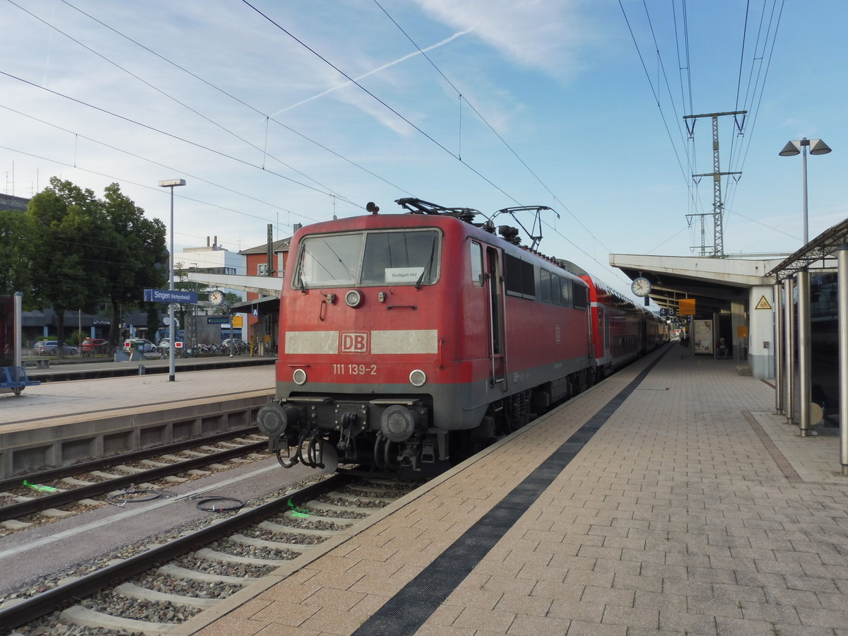 RE nach Stuttgart Hbf am 05.0717 mit 111 139 und DoStos in Singen(Htw)