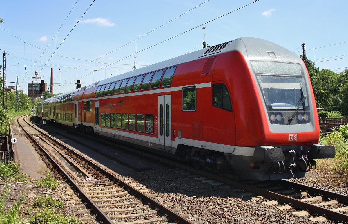 S1 von Dortmund Hauptbahnhof nach Essen-Steele Ost verlässt am 3.7.2017 den Bochumer Hauptbahnhof. Schublok war 111 155.