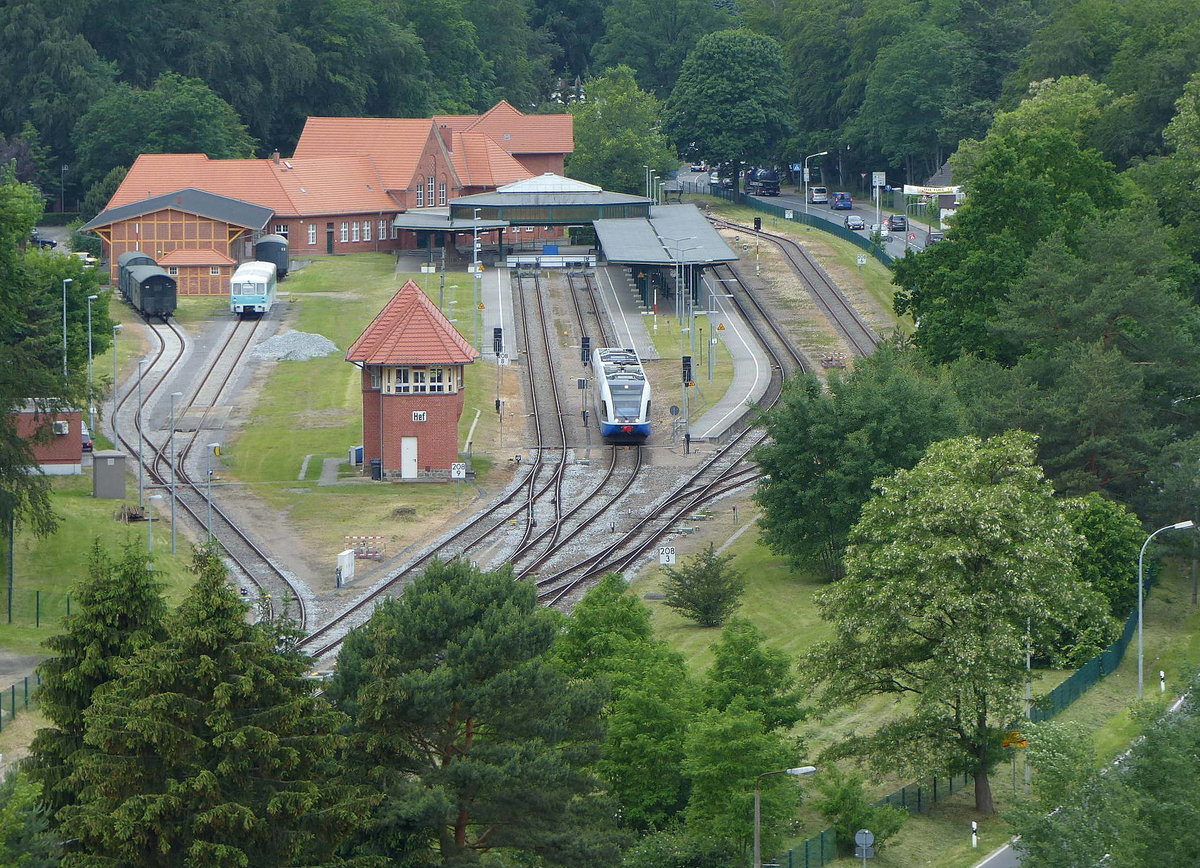 UBB 646 129-6 als UBB 24768 von Swinoujscie Centrum nach Wolgast, am 13.06.2017 bei der Abfahrt in Seebad Heringsdorf.
