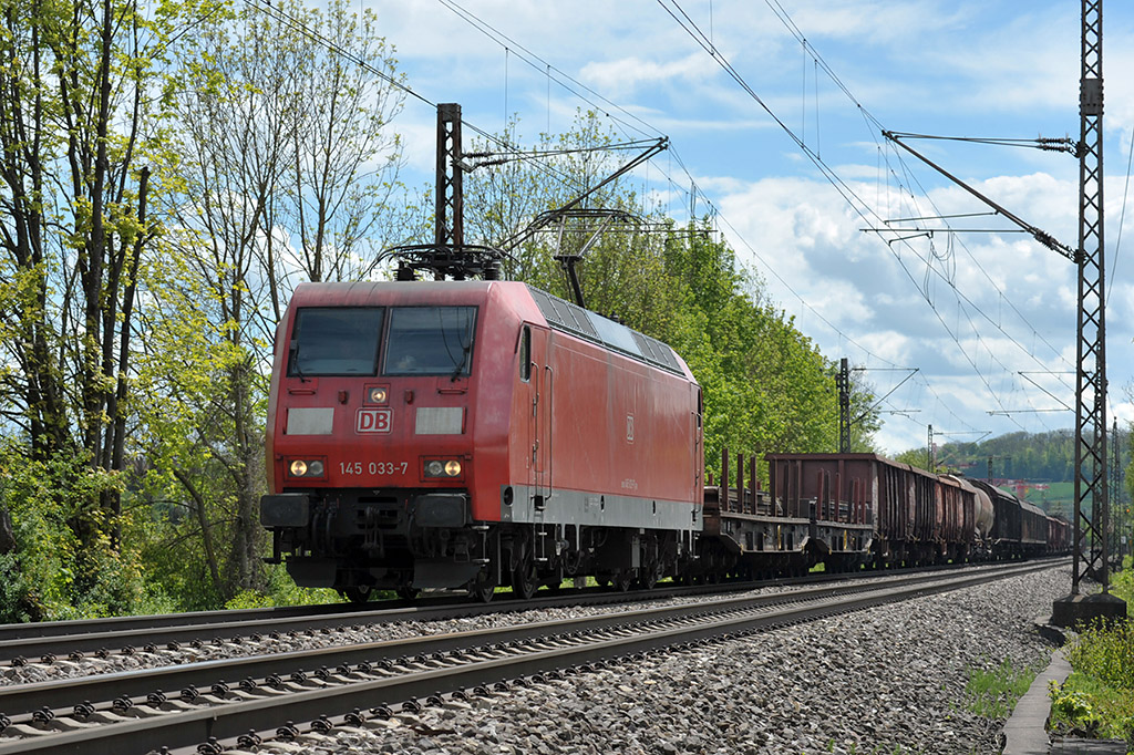 Am Abend des 17. Mai 2017 hielt ich mich bei Hebertshausen an der Strecke von München nach Ingolstadt auf, um den Zugverkehr zu beobachten. Motivlich ist dort wenig geboten, die vom Tanklager des Münchner Flughafens kommende EGP 151 033 mit leerem Kesselwagenzug dokumentierte ich aufgrund des warmen Lichts trotzdem gerne.