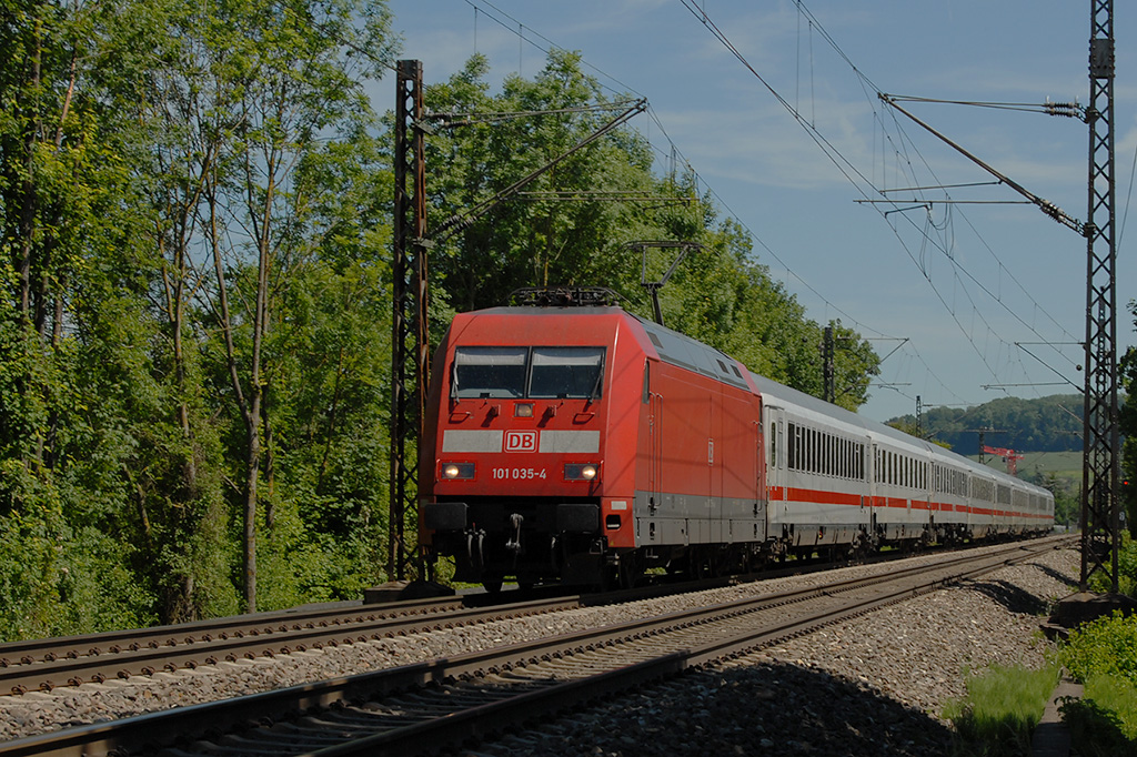 Einfahrt am 05.11.2015 von 101 084-2 mit dem EC 9 (hamburg Altona - Zürich HB) in den vorletzten Zwischenhalt in Basel Bad Bf, bevor sie einen Bahnhof weiter, in Basel SBB, ihren Zug an einen Re 4/4 II abgibt.