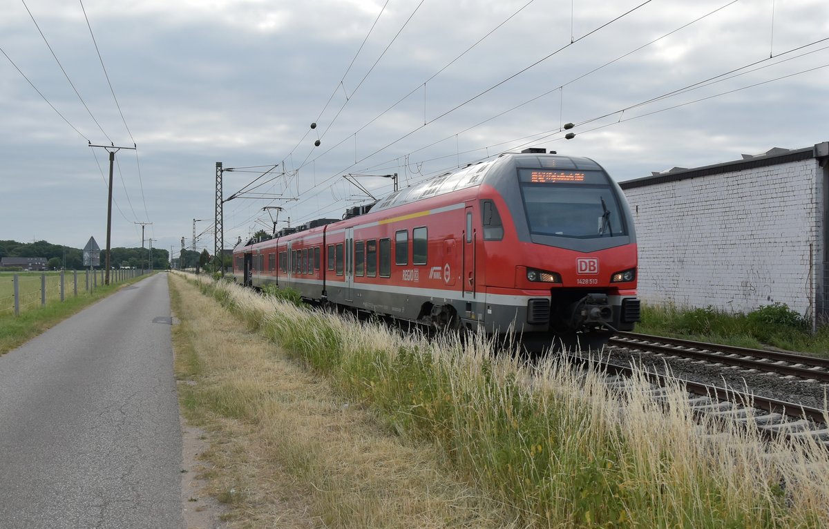 1428 513 als RE 42 Mönchengladbach in Anrath am Morgen des 24.6.2017