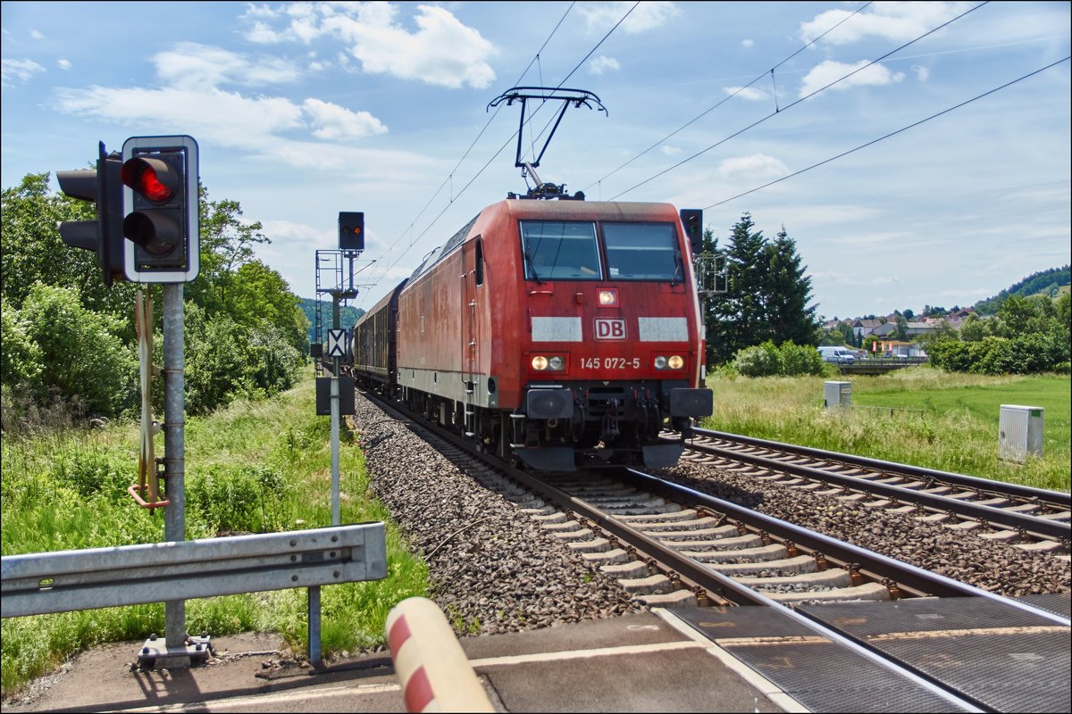 145 055-0 ist am 08.06.2017 in Richtung Fulda unterwegs,gesehen bei Reilos.