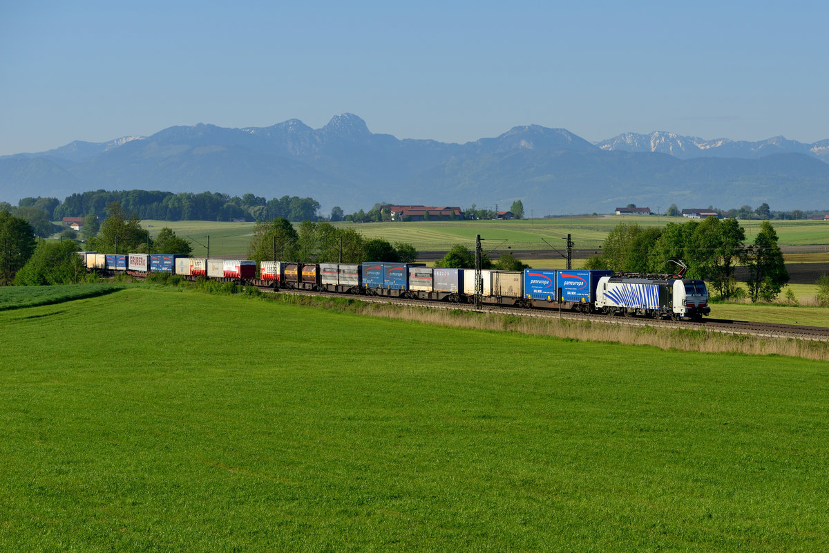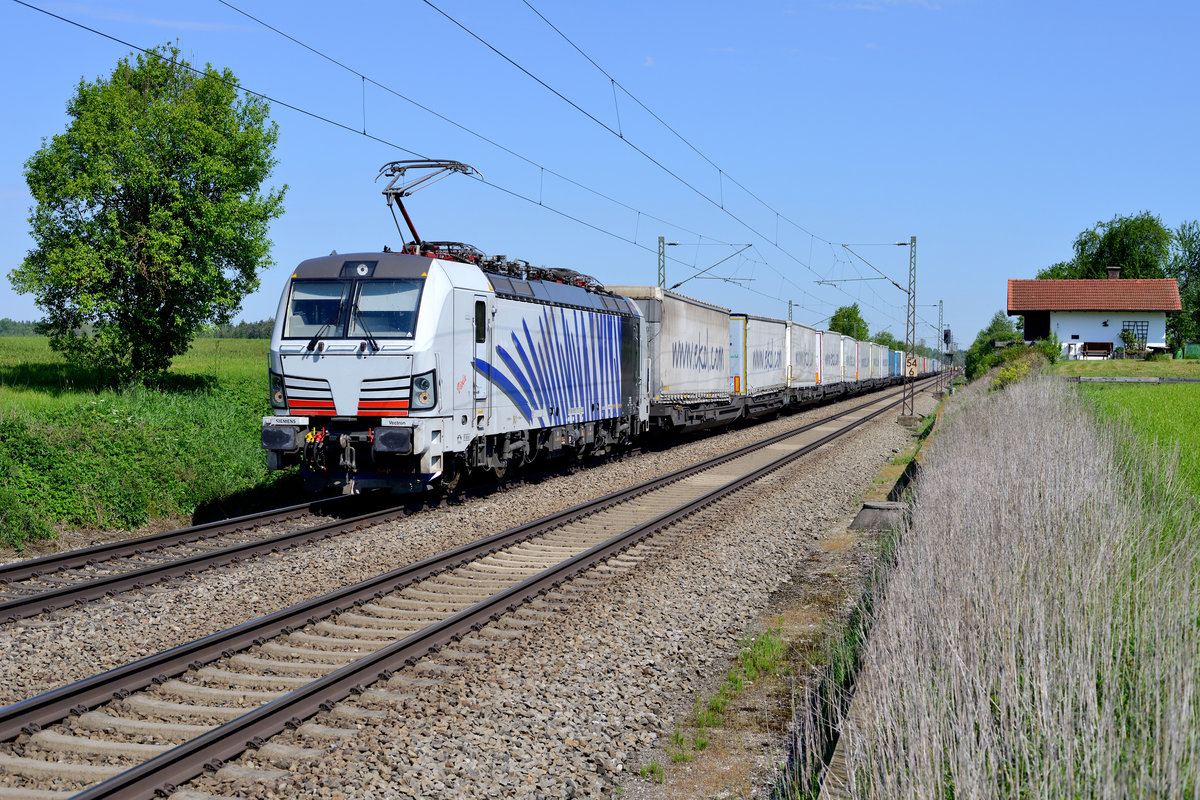 Noch etwas unfertig wirkt der erste an Lokomotion gelieferte Vectron - fehlt bei 193 772 doch noch die Frontbeschriftung. Am 18. Mai 2017 bespannte die mit dem Namen "Viola" bezeichnete Lok den DGS 41857 nach Triest - besser bekannt als "ekol-Zug" - und konnte am ehemaligen Block Hilperting abgelichtet werden.