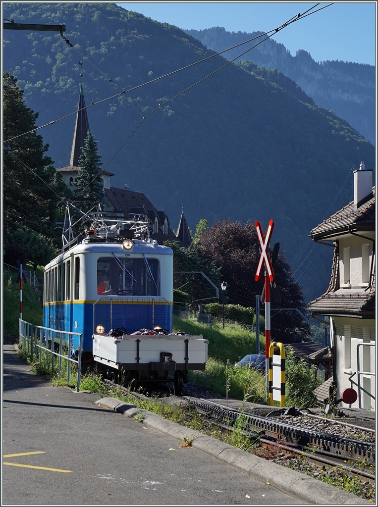 Der farblich etwas ungepflegte Bhe 2/4 207 verlässt Le Tremblex Richtung Caux.