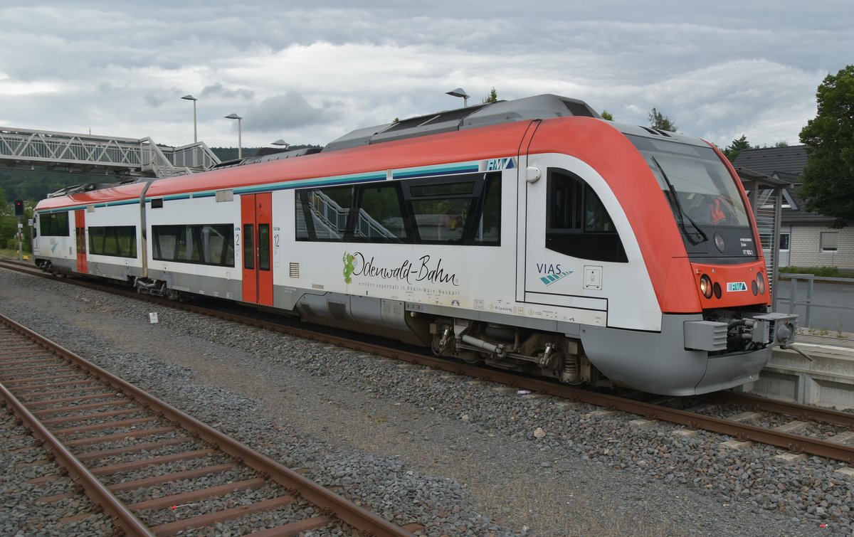 Einfahrt des VIAS VT 103/alias 615 603-7/615 103-8 am Sonntag den 2.6.2016 als RB 82 nach Eberbach in Michelstadt.