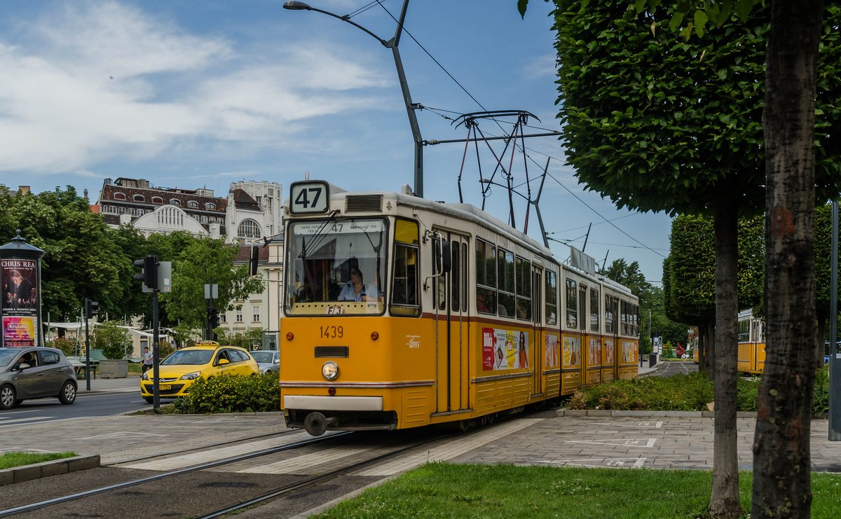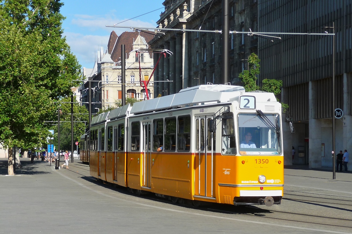 Ganz-CSMG Straßenbahn-Triebwagen 1350 der Linie 2 in Budapest, 7.8.16
