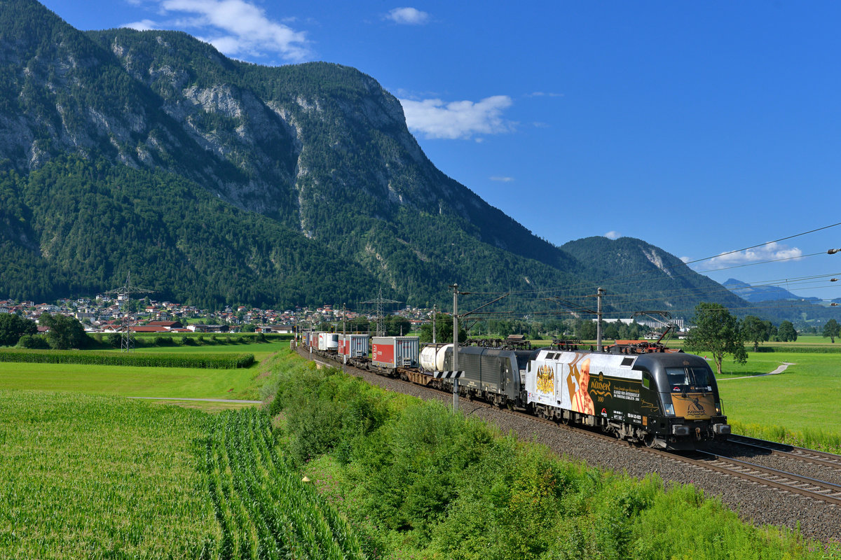 Alpha Trains Luxembourg 193 555 "OFFROAD", vermietet an TX Logistik zieht einen ARS-Altmann-Autotransportzug am 18.07.17 bei Wahnebergen in Richtung Hannover.