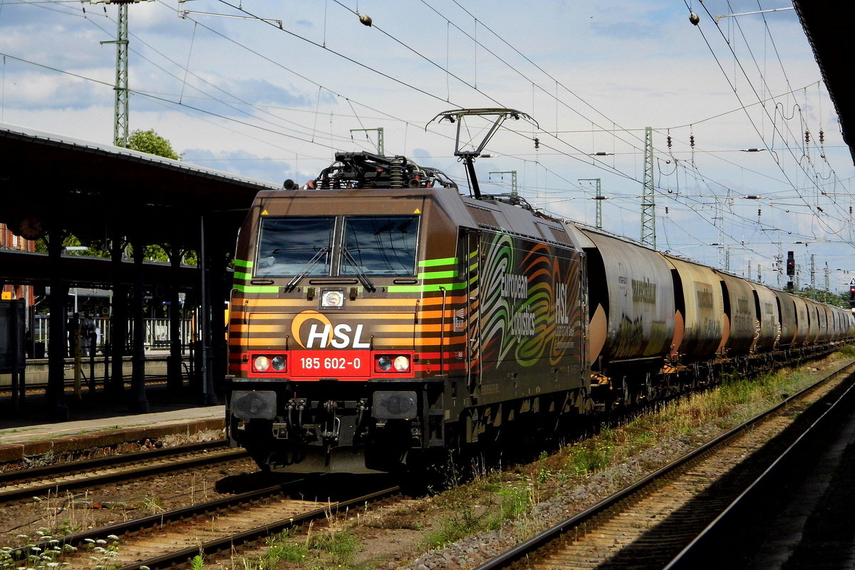 Am 23.07.2017 kam die 185 602-0 von der HSL Logistik GmbH, ( BRLL ) aus Richtung Magdeburg nach Stendal und fuhr weiter in Richtung Salzwedel .