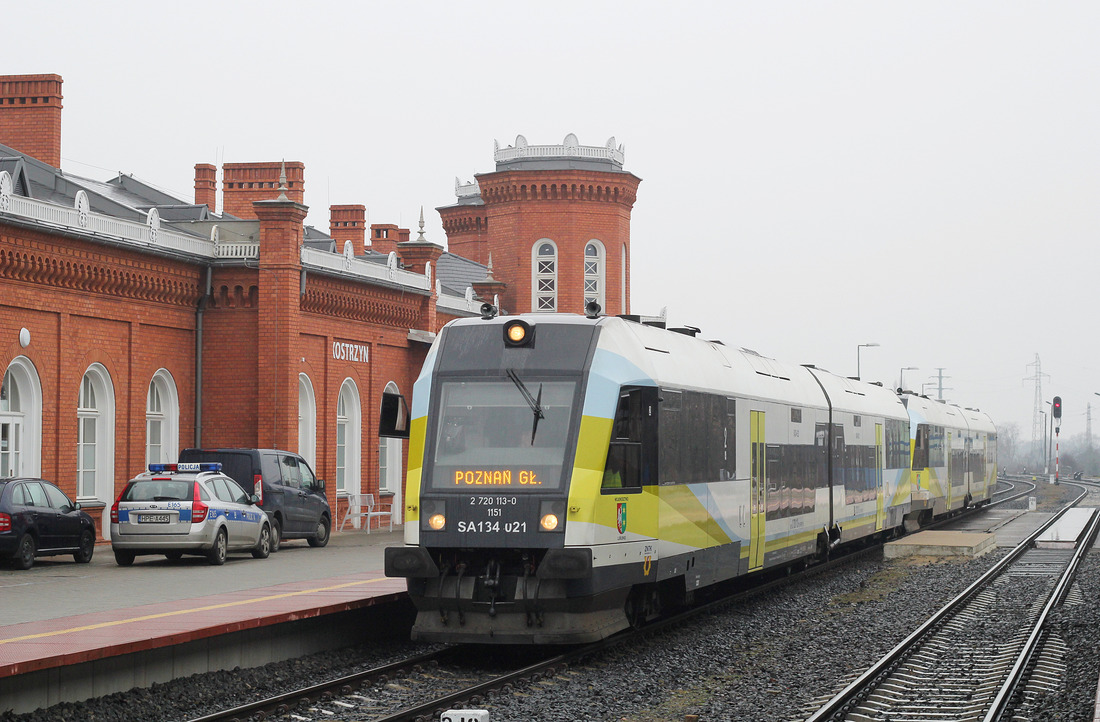 SA134 021 verlässt in Kürze den oberen Bahnhof In Kostrzyn als 87532 nach Poznan Glowny. Fotografiert am 25.03.2016.