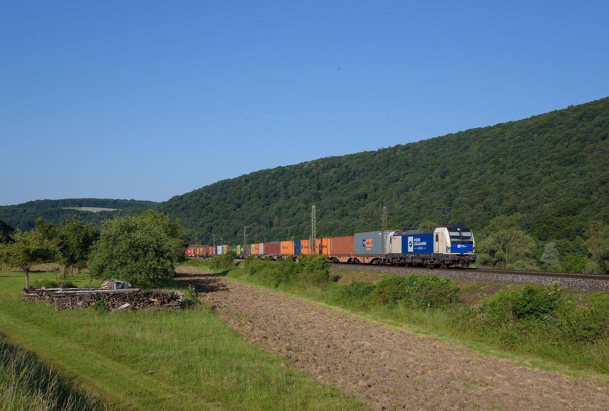 1193 980 der WLC mit Containern in Richtung Norden bei Wernfeld am Main am 15.6.2017.
