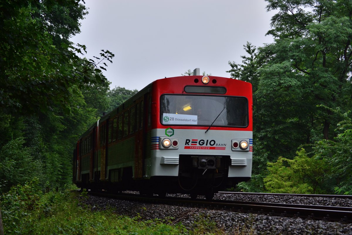 Auf Grund der Tour de France in Düsseldorf fuhr die Regiobahn auf der S28 am 1.7.17 im 15min Takt. Hier für wurden bei der Bayernbahn die beiden ex AKN Triebzüge 133 239 und 133 242 angemietet. Hier fahren die beiden Triebzüge als S28 von Mettmann kommend durch Erkrath gen Düsseldorf.