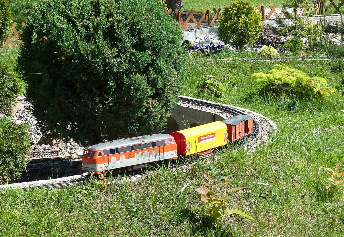 Citybahn V160 mit zwei Güterwagen am 09.06.2017 im Park Miniatur i Kolejek in Dziwnów.