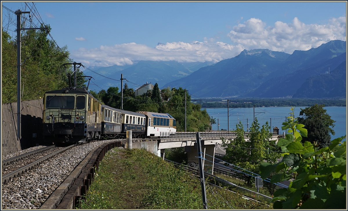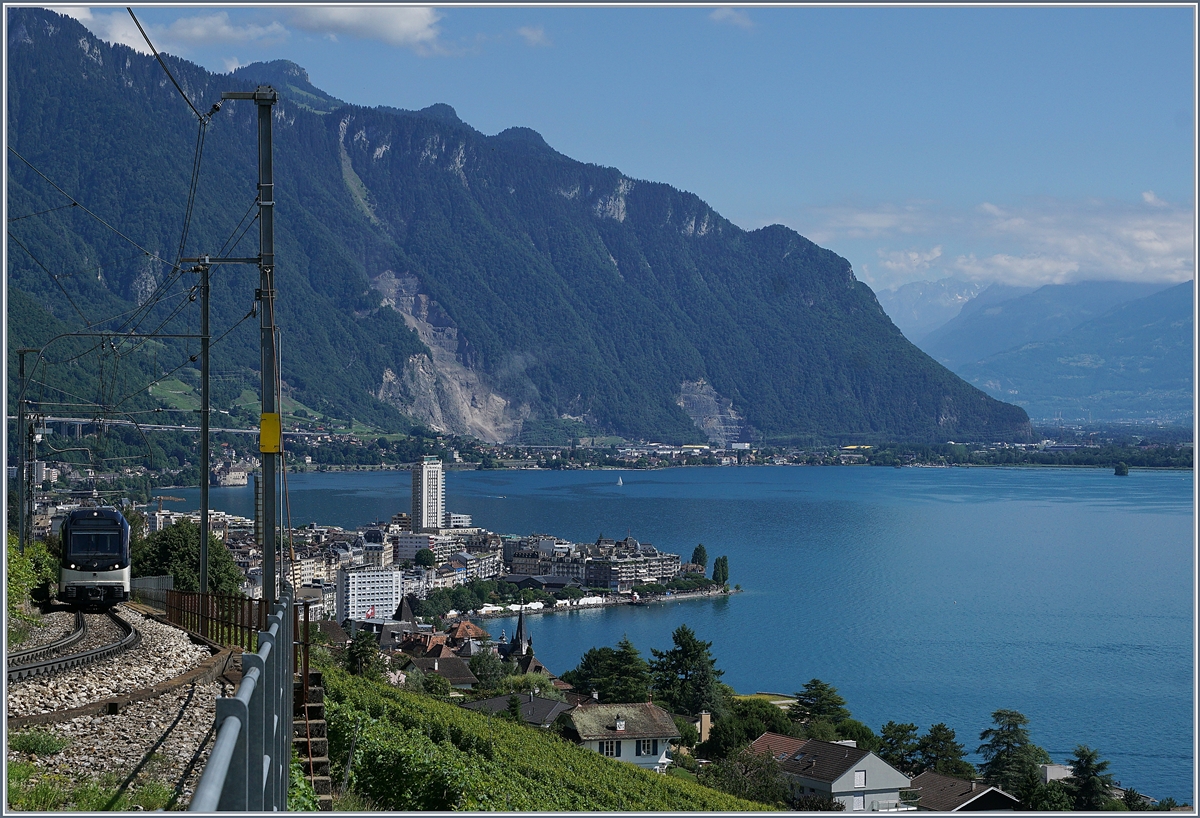 Die neue Alltagskost der MOB - SURF und Alpina: Der MVR ABeh 2/6 7506 als Regionalzug 2356 zwischen Châtelard VD und Planchamp. Ob die Züge den Weg an die Riviera lohnen, sei jedem selbst überlassen, doch wer einen Blick an den linken unteren Bildrand wirft, hat einen Guten Grund die Gegend zu besuchen...