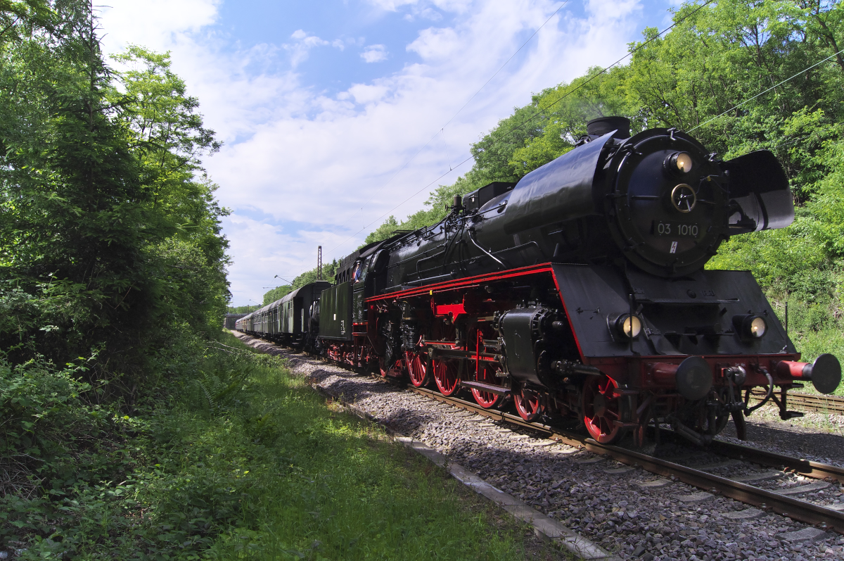 So ein Mist, da kommt die Fuhre aus der falschen Richtung. Leider hatten wir am 11.06.2017 etwas Pech mit dem Sonderzug mit 03 1010. Die Saarlandrundfahrt wurde kurzfristig andersherum gefahren, sodass wir total falsch standen. Aber auf den zweiten Blick ist das Foto gar nicht so schlecht geworden oder? 03 1010 mit Sonderzug Türkismühle - Saarbrücken - Türkismühle bei Schiffweiler. Bahnstrecke 3240 Saarbrücken - Wemmetsweiler - Neunkirchen Saar.