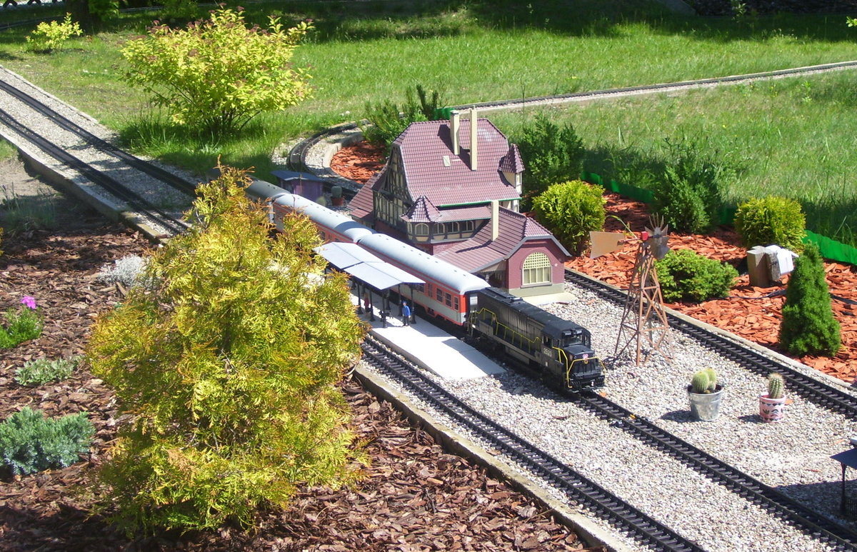 US-Lok mit Citybahnwagen am 09.06.2017 im Park Miniatur i Kolejek in Dziwnów.
