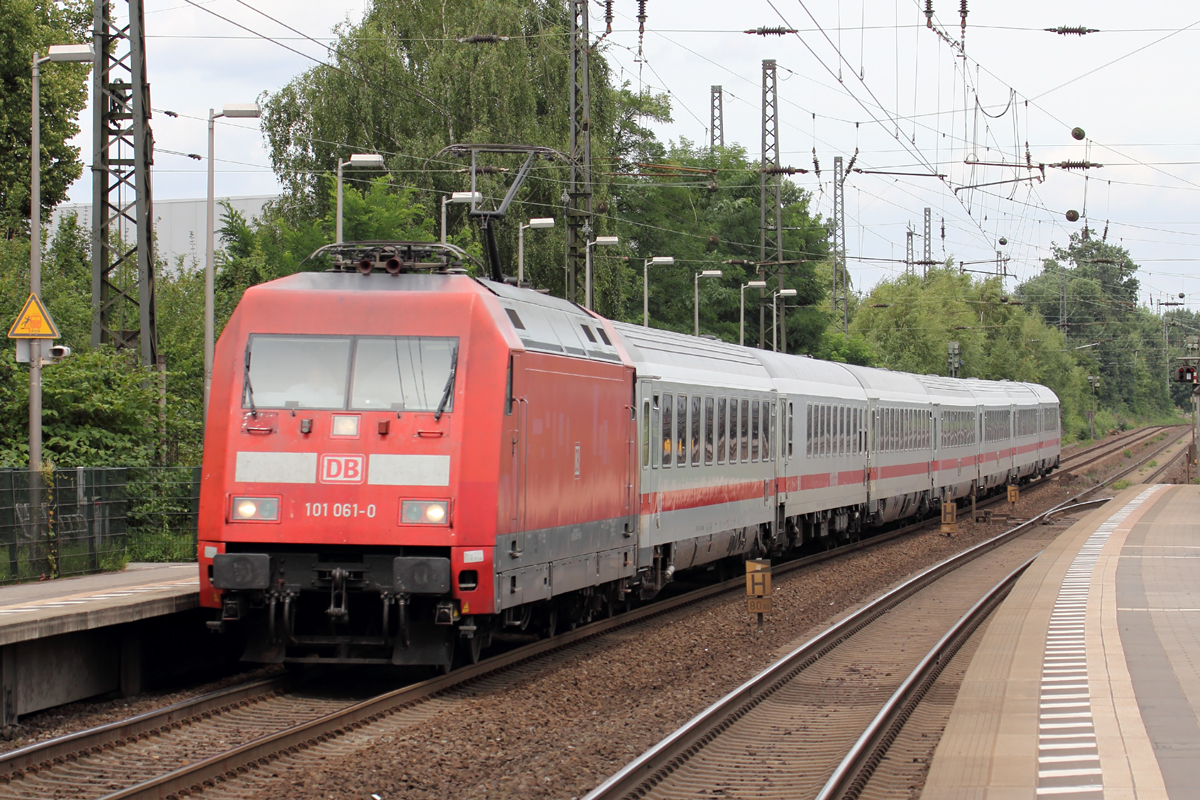 Bimdzf mit BR 101 als IC 1933 (Linie 56) von Oldenburg(Oldb) nach Leipzig Hbf durchfährt den Bahnhof Helmstedt. [14.7.2017 - 15:10 Uhr]