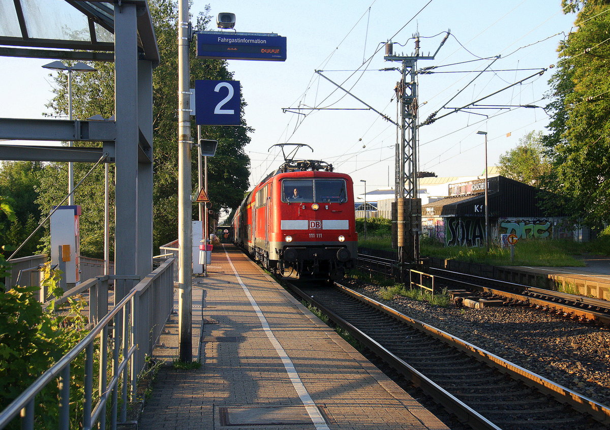 111 111 DB kommt die Kohlscheider-Rampe hoch aus Richtung Neuss,Herzogenrath mit mit dem RE4 aus Dortmund-Hbf nach Aachen-Hbf und fährt durch Kohlscheid in Richtung Richterich,Laurensberg,Aachen-West,Aachen-Schanz,Aachen-Hbf. Aufgenommen vom Bahnsteig 2 in Kohlscheid. Bei Sommerwetter am Abend vom 18.6.2017.