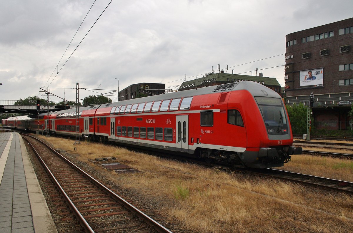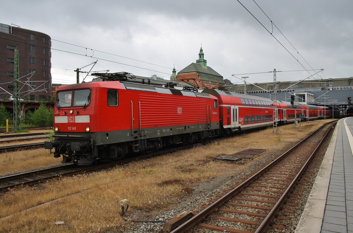 112 149 verlässt am 25.6.2017 mit dem RE8 (RE21412) von Hamburg Hauptbahnhof nach Lübeck-Travemünde Strand den Lübecker Hauptbahnhof.