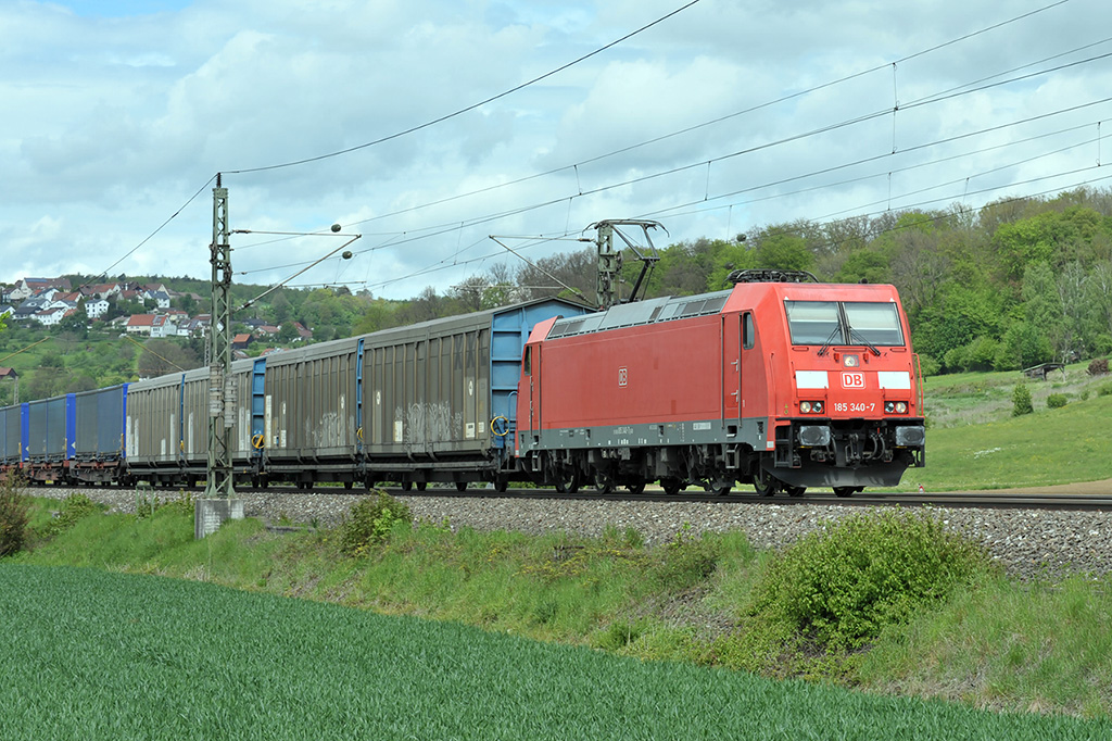 152 007 beförderte am 15.06.17 einen gemischten Güterzug durch Thüngersheim Richtung Würzburg.