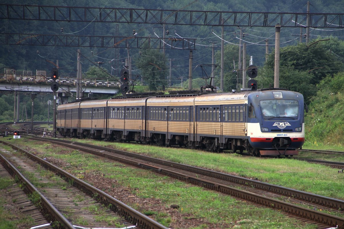 EPL2T-031 . Ein nicht mehr so frischer Triebwagen in Skole Ukraine am 22.07.2017.