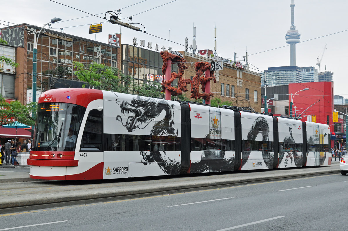 Flexity Tramzug der TTC 4403, auf der Linie 510 unterwegs in Toronto. Die Aufnahme stammt vom 22.07.2017.
