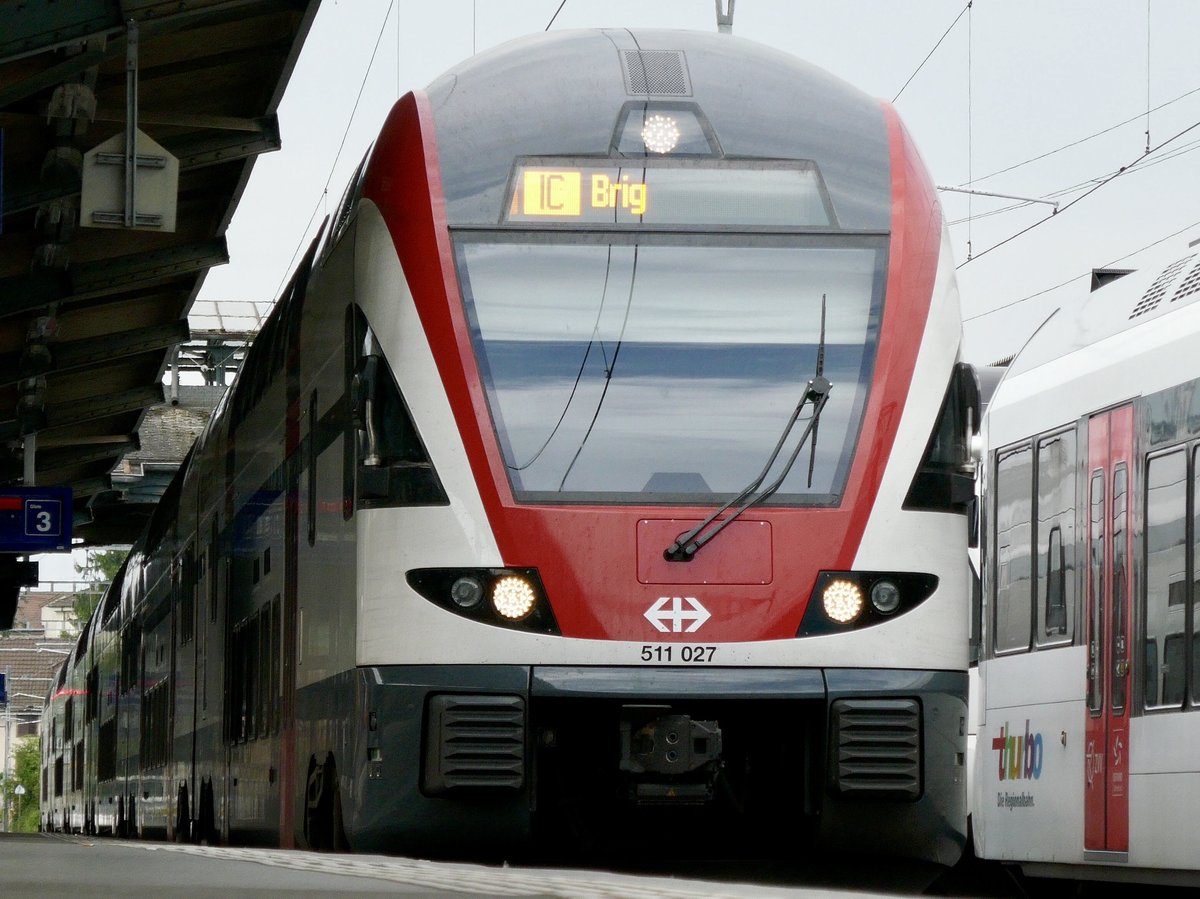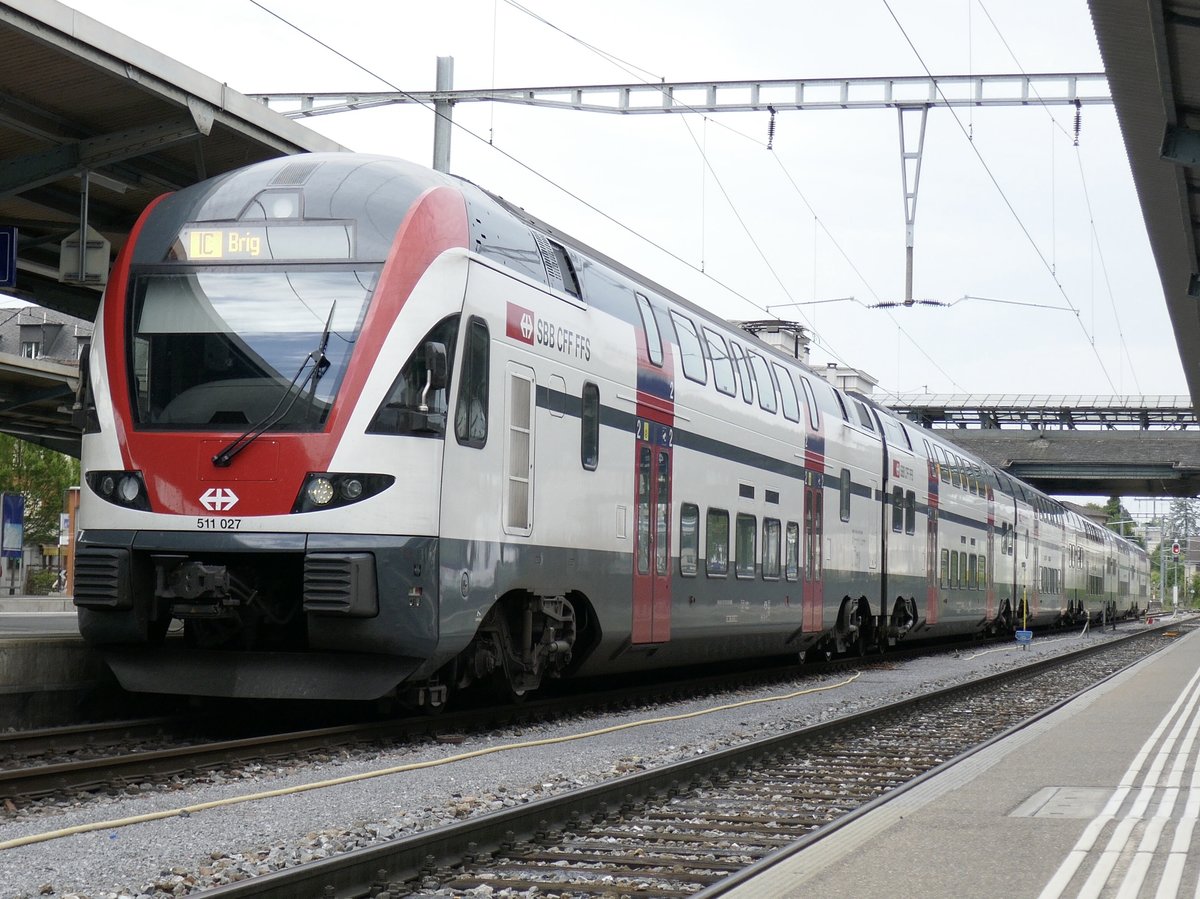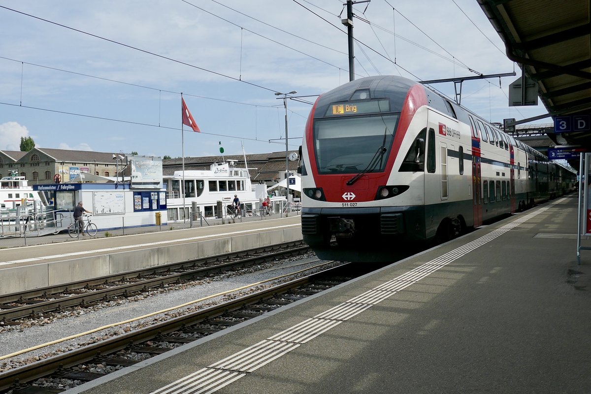 Mit einem Kiss von Romanshorn nach Brig? Nicht ganz! Wegen der Fahrleitungserneuerung zwischen Weinfelden und Frauenfeld verkehrt dieser RABe 511 027 zwischen Romanshorn und Weinfelden, zumindest die Fahrzeugnummer würde ja passen (Walliser Telefonvorwahl) 31.7.17 im Bhf Romanshorn.