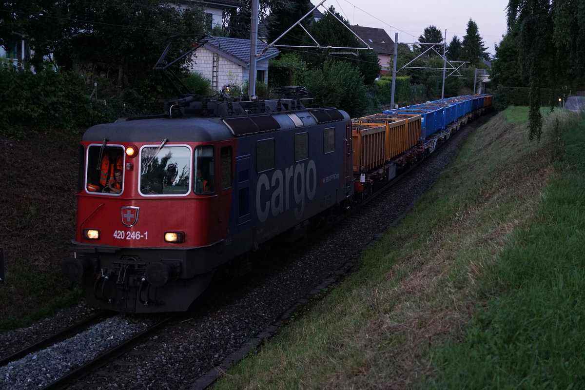 SBB: ABENDSTIMMUNG. Zum Leid der Bahnfotografen sind die "Bahnfototage" schon wieder kürzer geworden. Am 26. Juli 2017 wurde ein herrlicher Sommertag um 21:01h mit der Re 420 246-1 bei Biberist beendet. Foto: Walter Ruetsch
