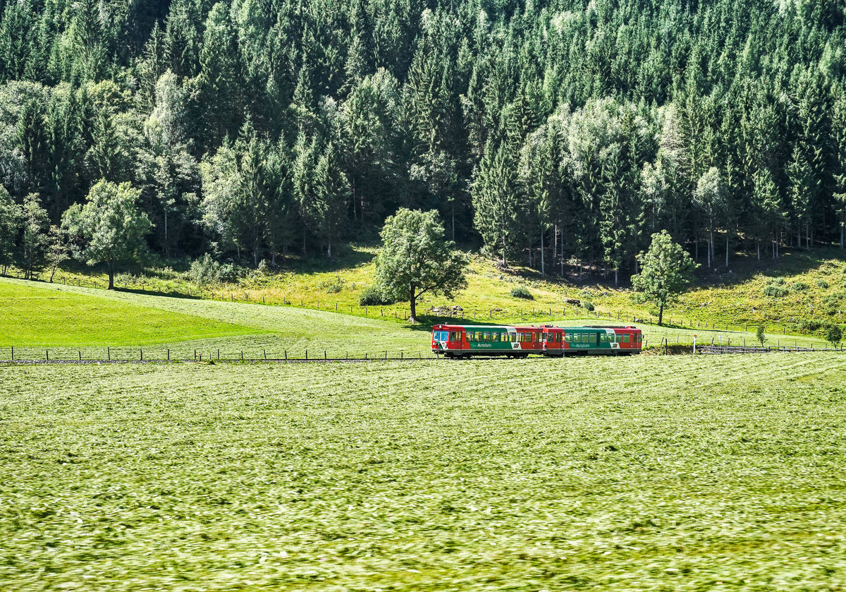 Da es in der Endhaltestelle der Taurachbahn St. Anrä Andlwirt für die Lok keine Möglichkeit zum Stürzen gibt, fährt der Zug noch einige hundert Meter weiter bis zum Betriebsbahnhof St. Andrä-Wölting. Hier zu sehen ist 298.56 des Club 760 auf dem Rückweg von St. Andrä-Wölting, kurz vor der Haltestelle St. Andrä Andlwirt. Aufgenommen am 31.7.2017.