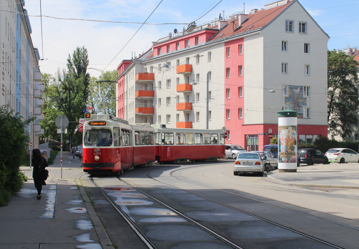Wien Wiener Linien SL 31 (E2 4073 + c5 1471) XXI, Floridsdorf, Schöpfleuthnergasse / Matthäus-Jiszda-Straße am Vormittag des 13. Mai 2017.