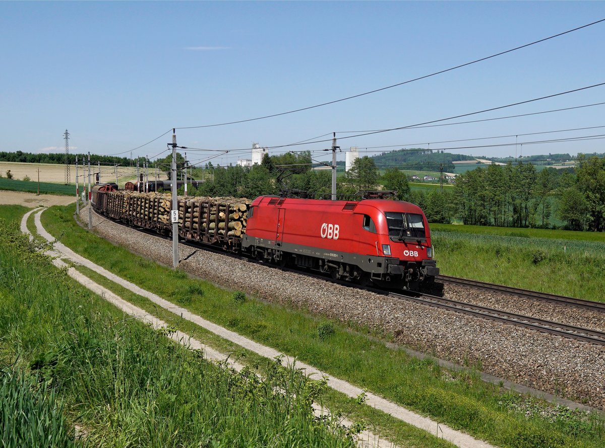 Die 1016 005 mit einem Güterzug am 19.05.2017 unterwegs bei Haiding.