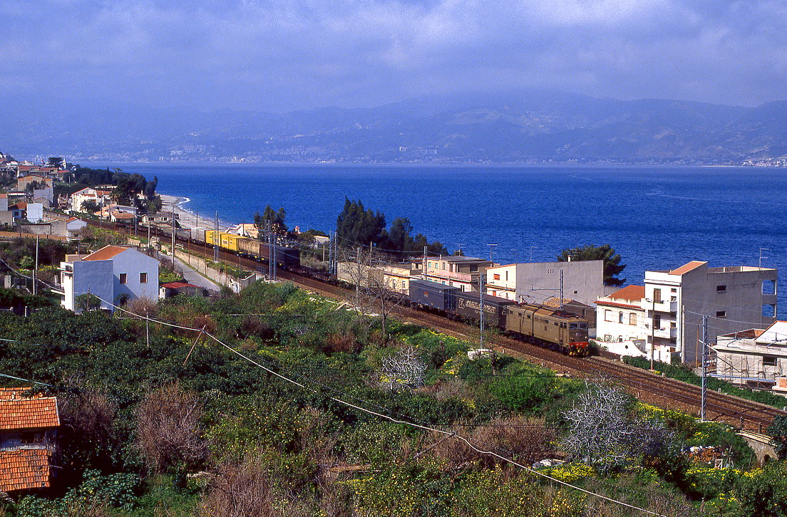 Eine E645 bei Villa San Giovanni gegenüber der sizilianischen Küste, 21.03.2002.