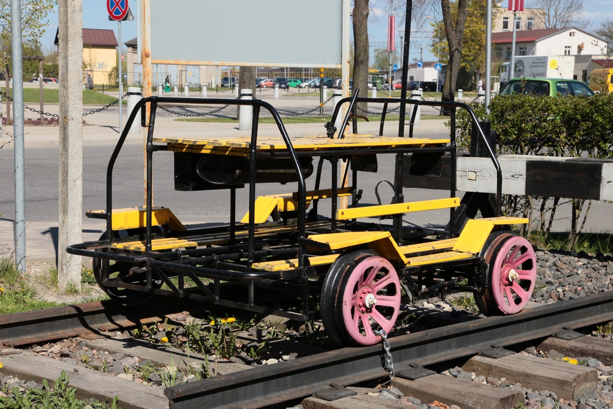 Ein schmalspuriges Draisinenwägelchen im Eisenbahnmuseum Jelgava. 13.05.2017