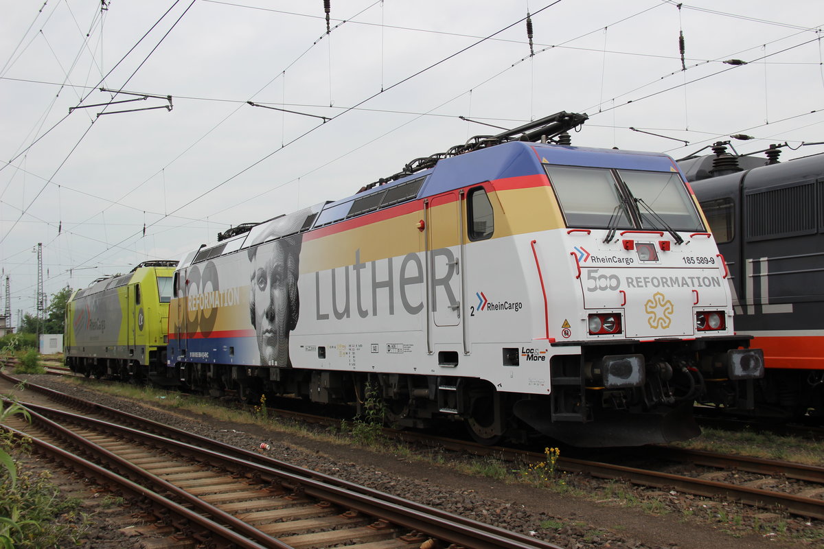 185 510-5 von Railtraxx und 185 609-5 von Crossrail stehen abgestellt in Herzogenrath.