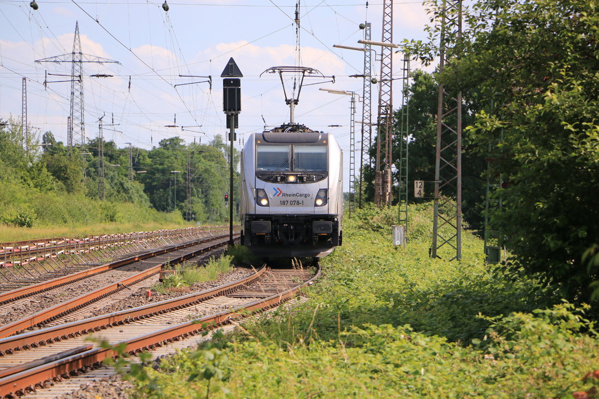 187 078 am 10.06.2017 in Lintorf. Richtungsgleis Duisburg ist zu diesem Zeitpunkt wegen Schienenerneuerungen gesperrt.