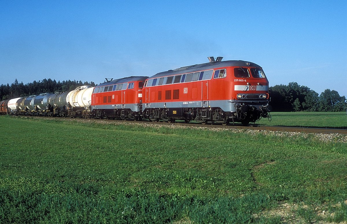 Beim Nachschuss auf 215 082-9 schob sich unerwartet auch 01 150 ins Bild. Der Sonderzug war auf dem Weg in Richtung Sauerland.