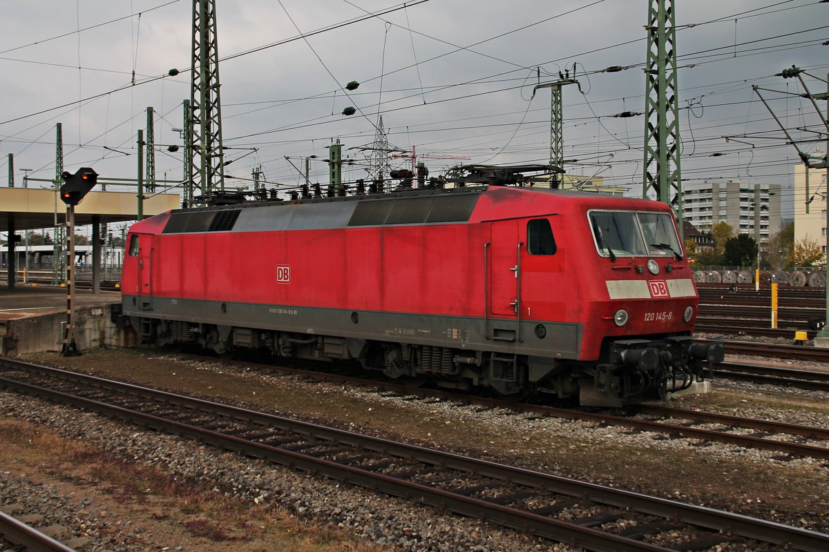 Am Nachmittag des 21.10.2015 stand 120 145-8 abgestellt am südlichen Ende von Bahnsteig 4/5 in Basel Bad Bf und wartete darauf am Abend den CNL nach Berlin zu bespannen.