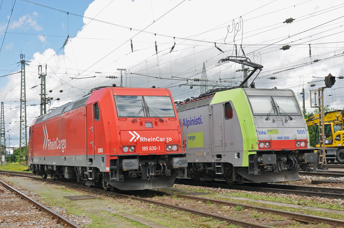 Lok 185 620-1 und die Re 486 505-1 stehen beim Badischen Bahnhof nebeneinander. Die Aufnahme stammt vom 06.06.2017.