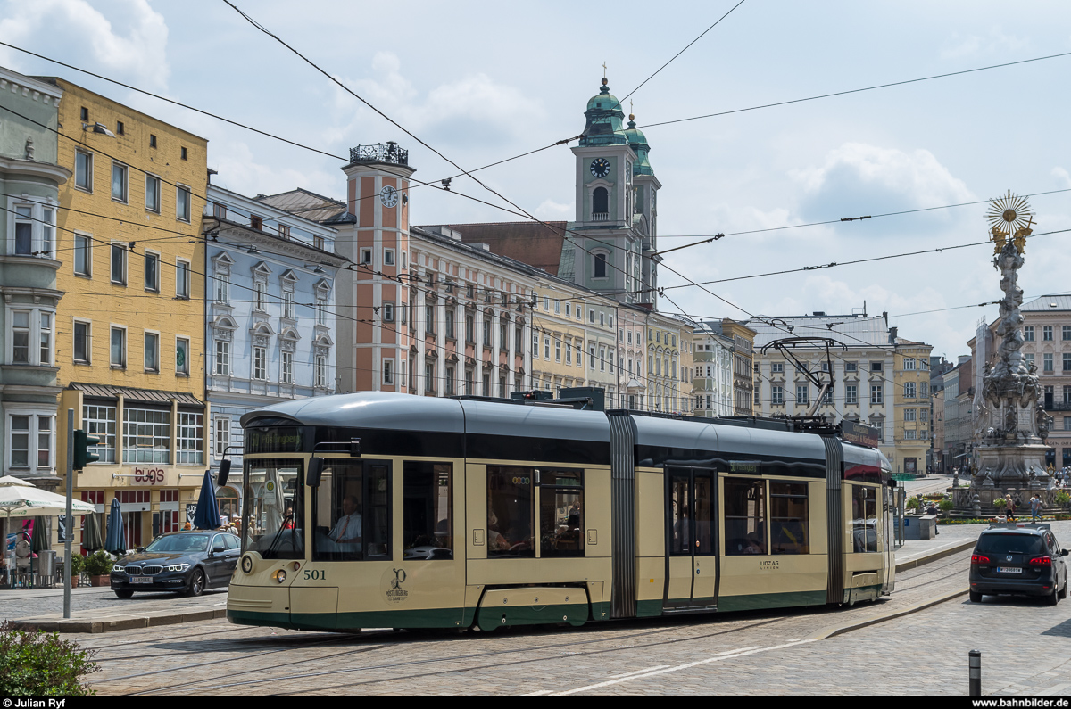 Mountainrunner 501 verlässt am 31. Mai 2017 die Endstation Linz Hauptplatz in Richtung Pöstlingberg.